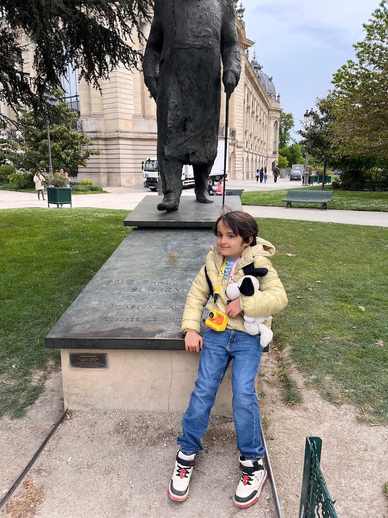 Passamos novamente pelo Grand Palais e desta vez o Louis quis tirar uma foto junto da estátua de Winston Churchill e que giro que ficou 🙂