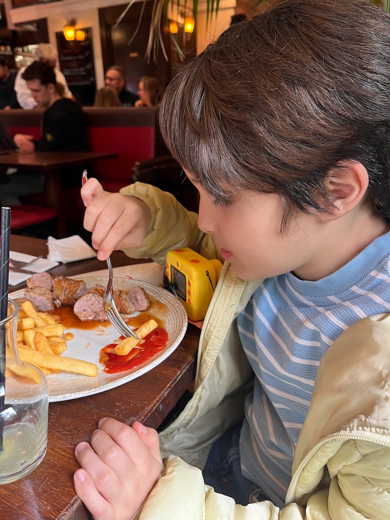 Jantamos num restaurante perto do hotel, o Le General e gostamos muito, tanto pelo atendimento simpático como pela comida 🙂 Escusado será dizer que o Louis escolheu uma comida tipicamente não francesa 😀 Mas sim a sua preferida, pasta ou massa em bom português 😀