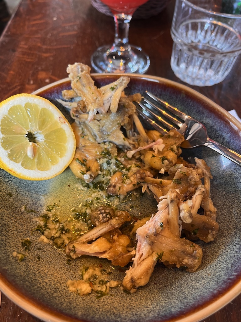 Acabamos por escolher o Bistro Le Centenaire e vocês não vão acreditar no que eu comi de entrada 😀 Perninhas de rã, e estavam deliciosas 🙂 E para sobremesa, consolei-me com os famosos crepes 😉 E ainda tivemos direito a uma vista privilegiada da bela Torre Eiffel 🙂