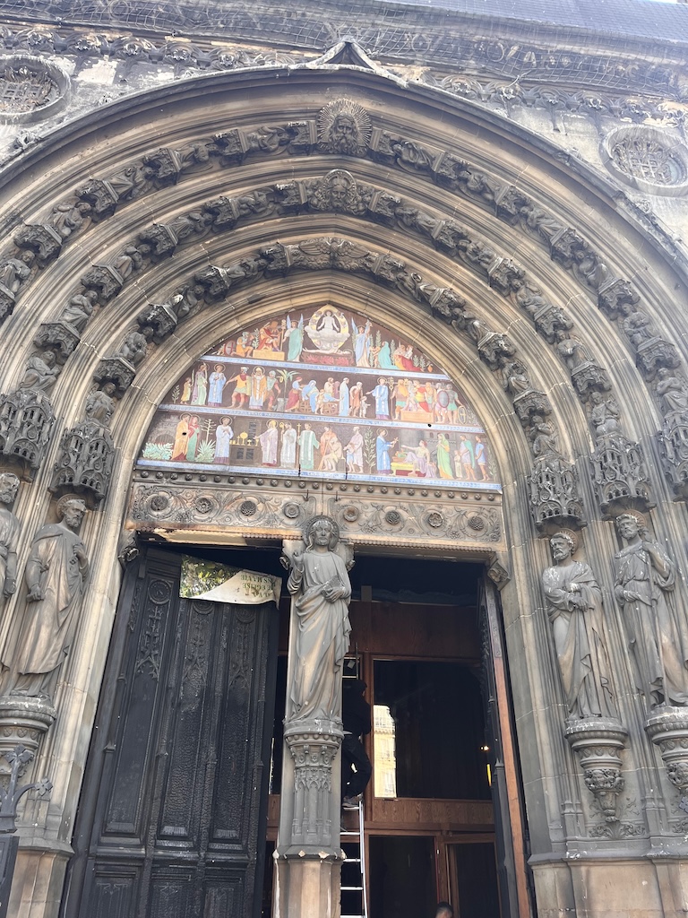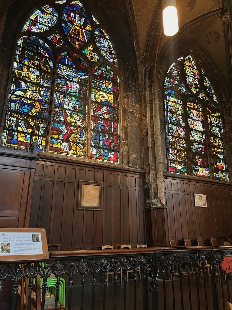 A nossa reserva estava marcada para o meio-dia e por isso ainda tivemos tempo de visitar a Igreja St Laurent que ficava em frente ao restaurante. Sempre que viajo, adoro visitar igrejas porque gosto de sentir a paz destes lugares. Não consegui resistir a tirar fotos de todos os detalhes 🙂